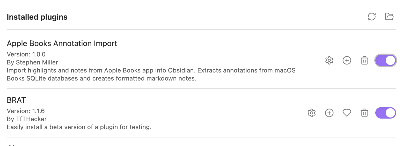 https://github.com/eristoddle/obsidian-apple-books-import - Click “Add Plugin” - Choose the latest version and BRAT will automatically install and enable it