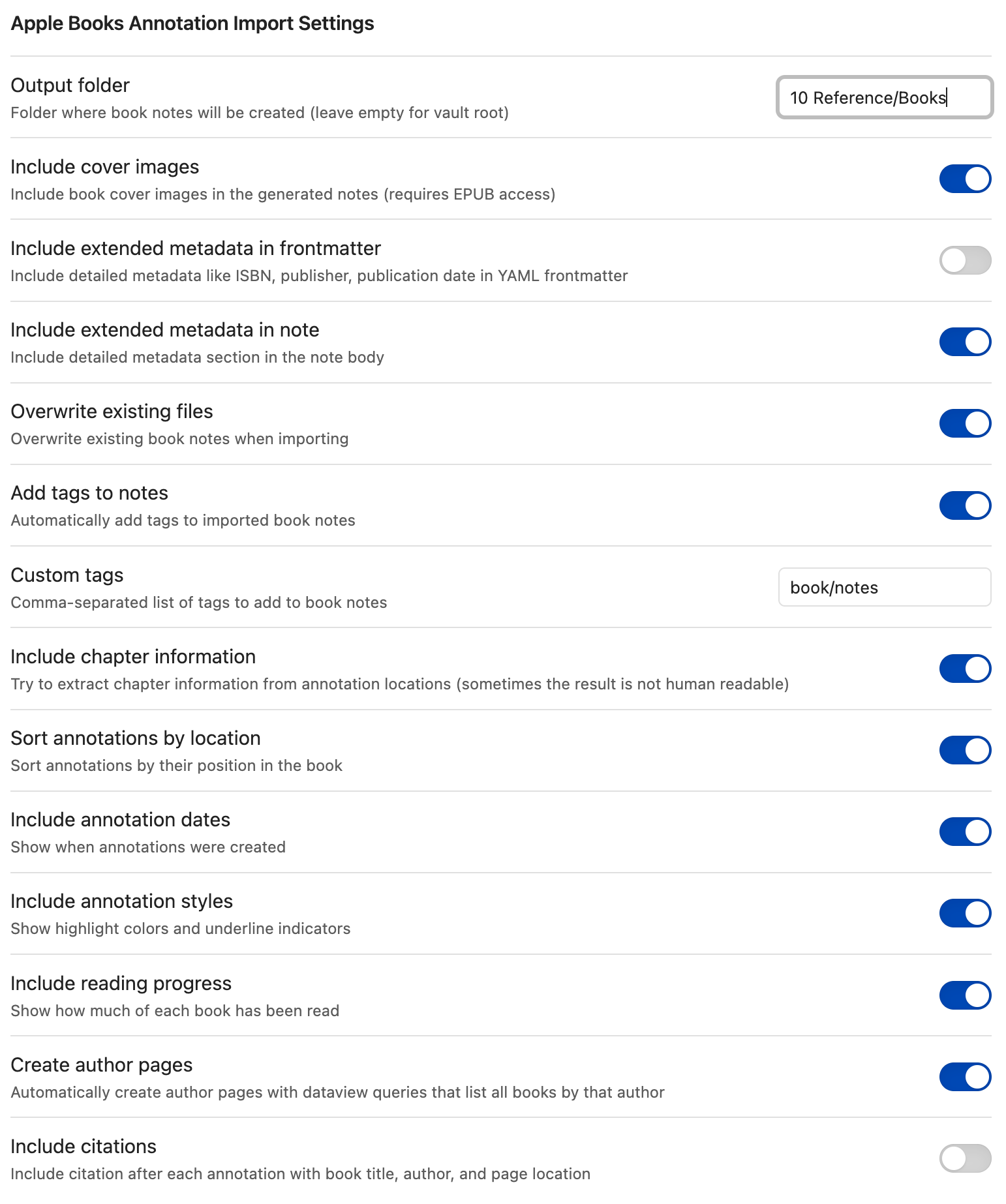 I’m obsessed with having all my book highlights and notes in one place, and Obsidian seemed like a great place for them. First, I paid for a year’s Readwise subscription, which really didn’t cost too much and did the job well, but after the year, I realized that I really only used it to import my highlights from Kindle and Apple Books and there were free Obsidian plugins to import Kindle highlights.