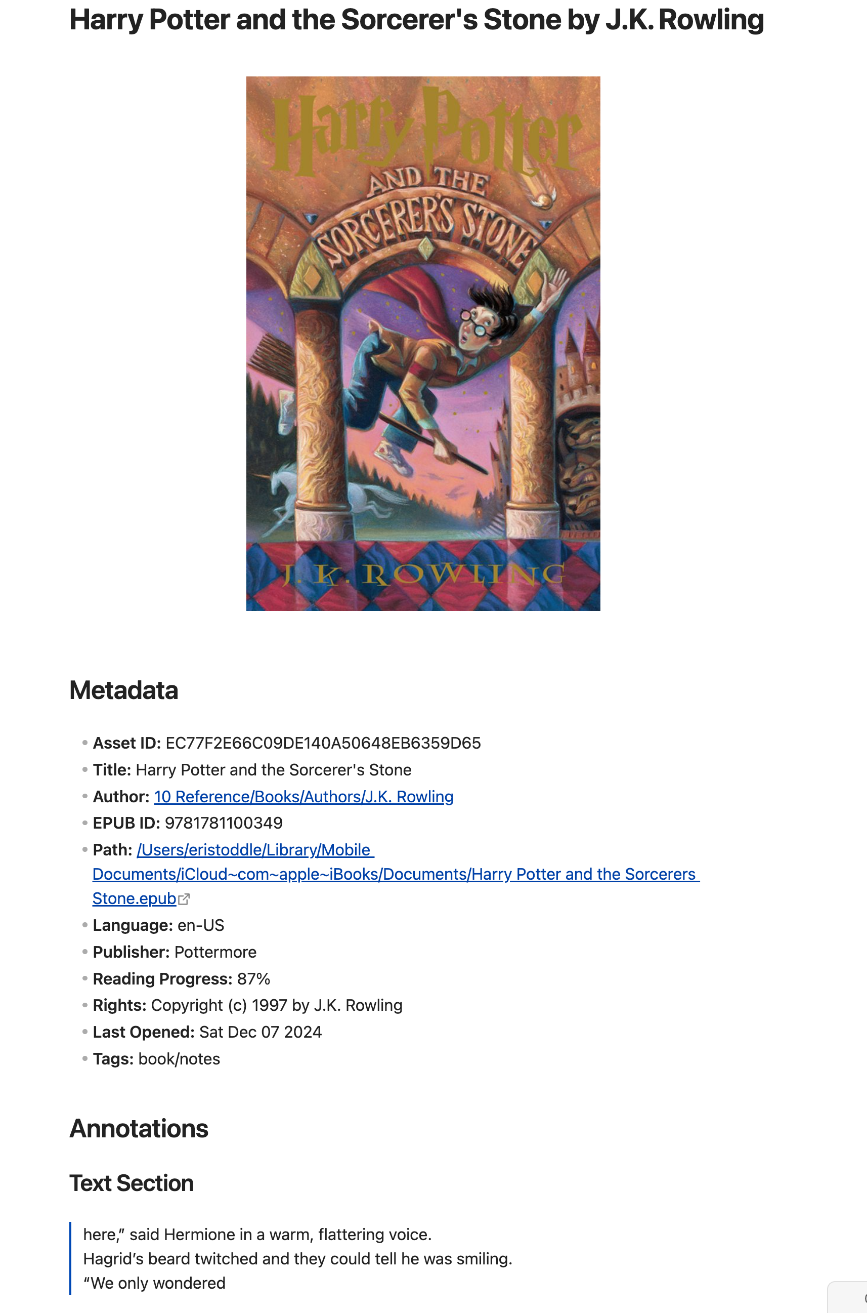 - The annotations weren’t by chapter (there is still an issue in the current plugin in that I have chapters now, but they are not human readable).
