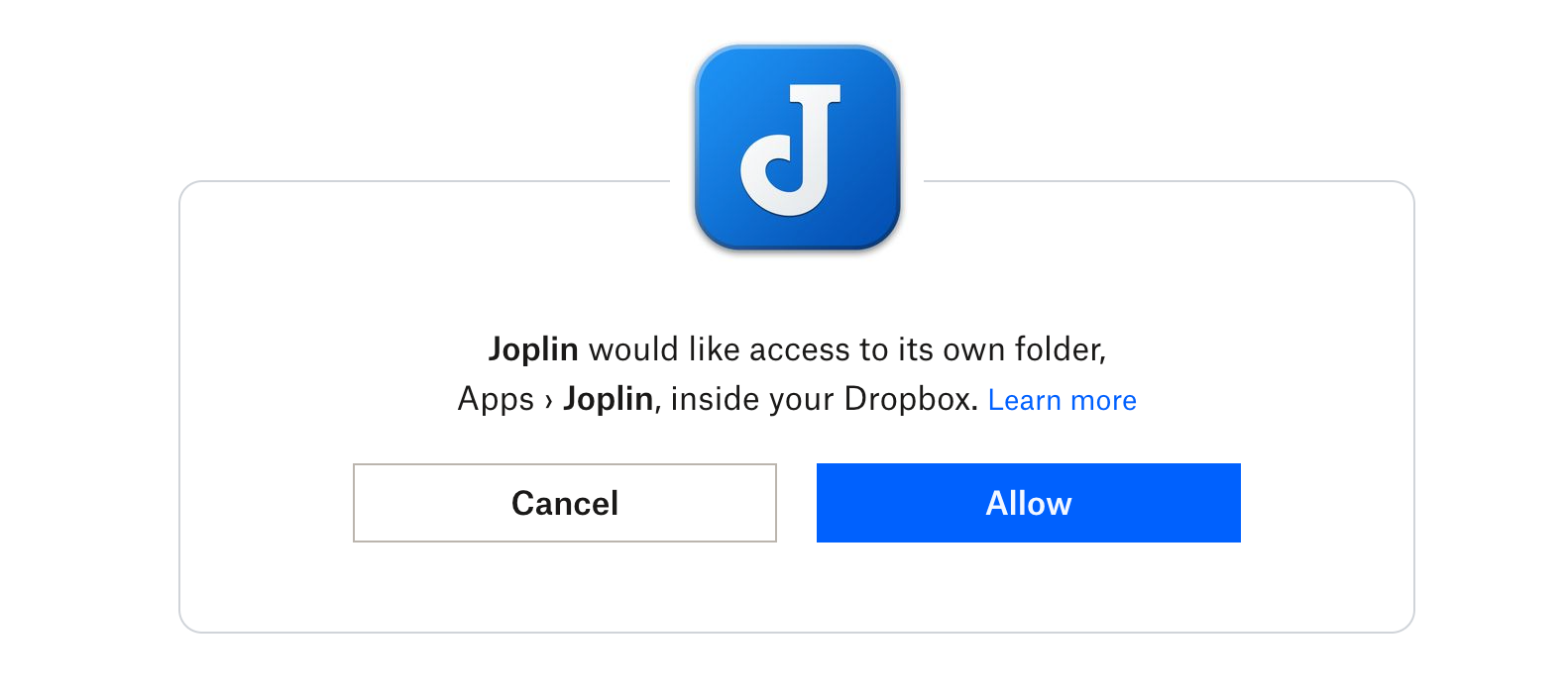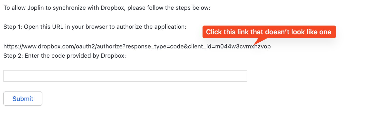 Clicking that link will take you to the web to authorize Joplin access to Dropbox:
