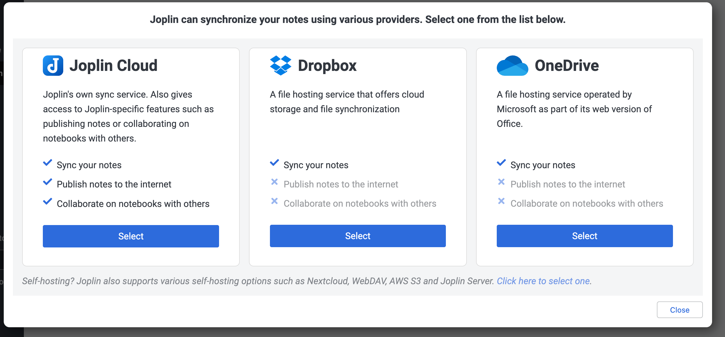 You can also sync to NextCloud, WebDAV, S3 or Joplin Server by choosing the option from the Synchronization target dropdown: