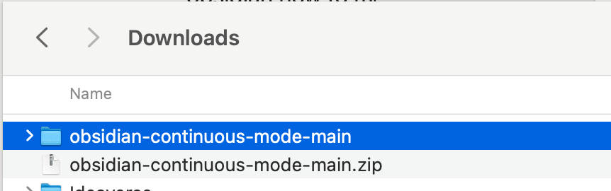 I will use the Obsidian Continuous Mode plugin as an example. This can be installed through the regular process, but here is how you do it manually. Go to the git repo where your plugin is located and download the whole thing as a zip file. See the image below: