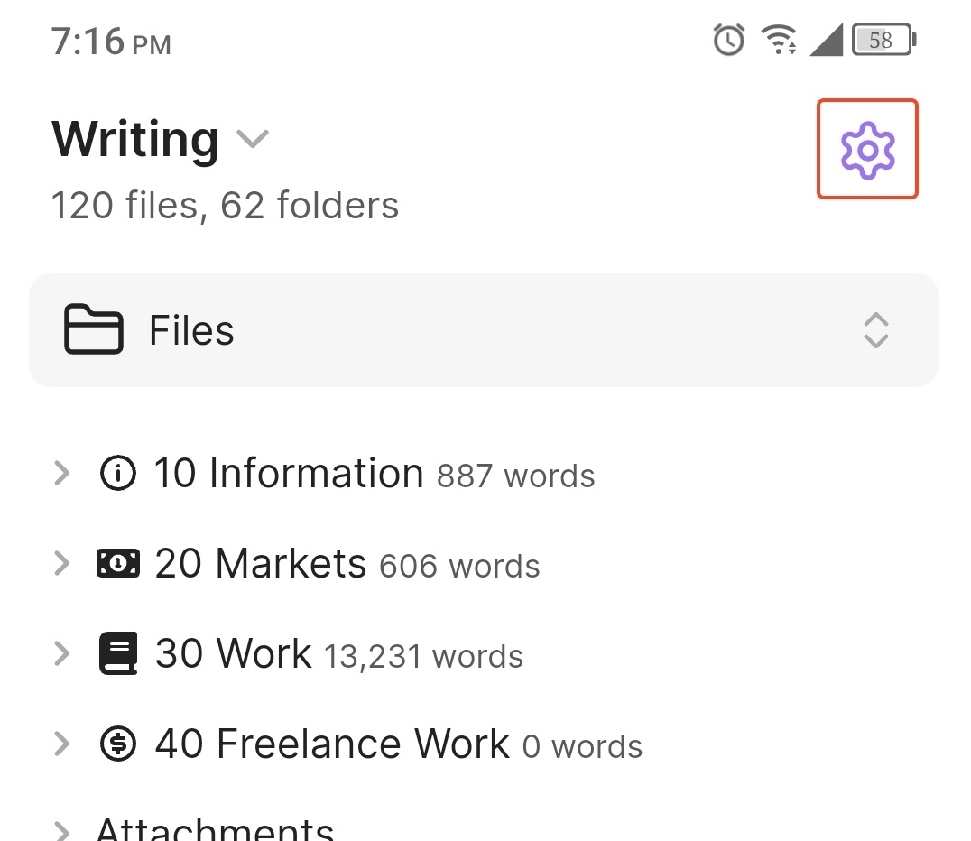 In the mobile app, you find the Settings menu by clicking the gear at the top of the side menu/drawer: