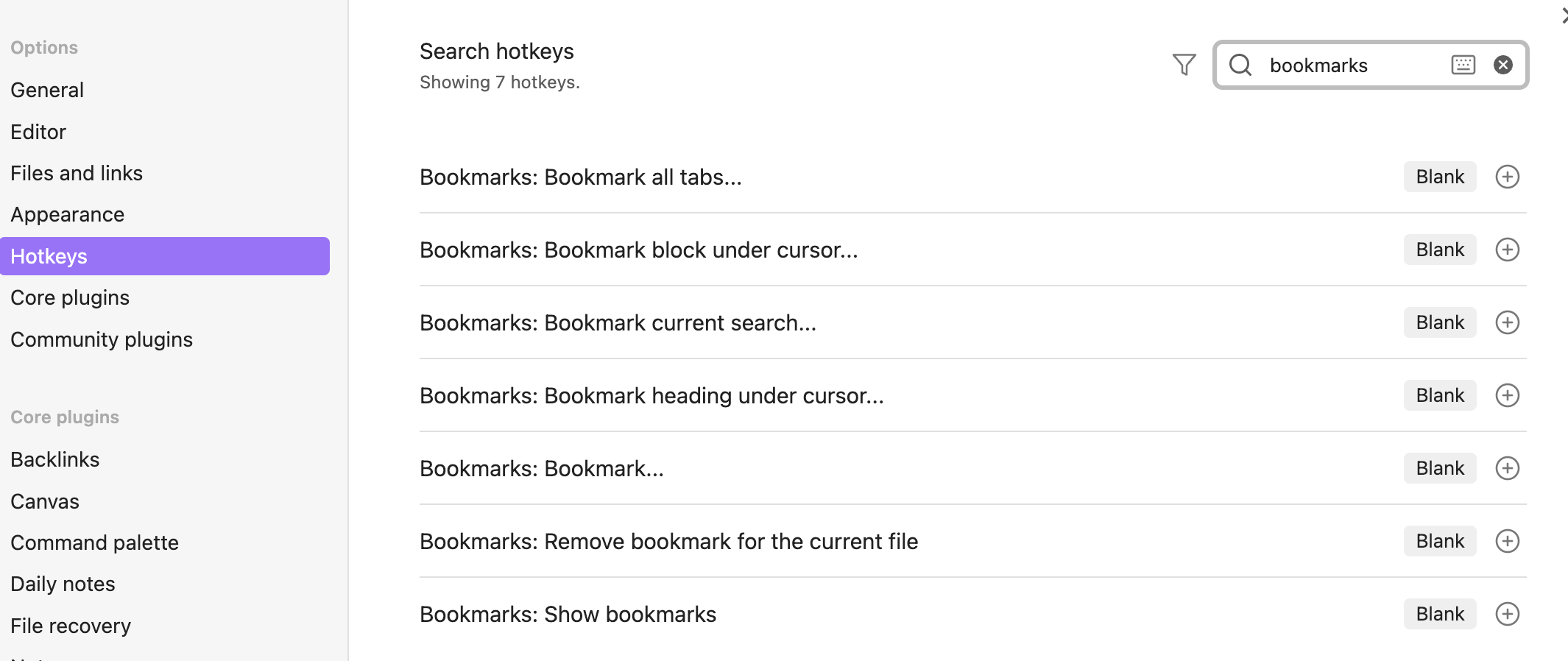 You can also go directly to the hotkeys by clicking Hotkeys in the Options section and search for a specific one.