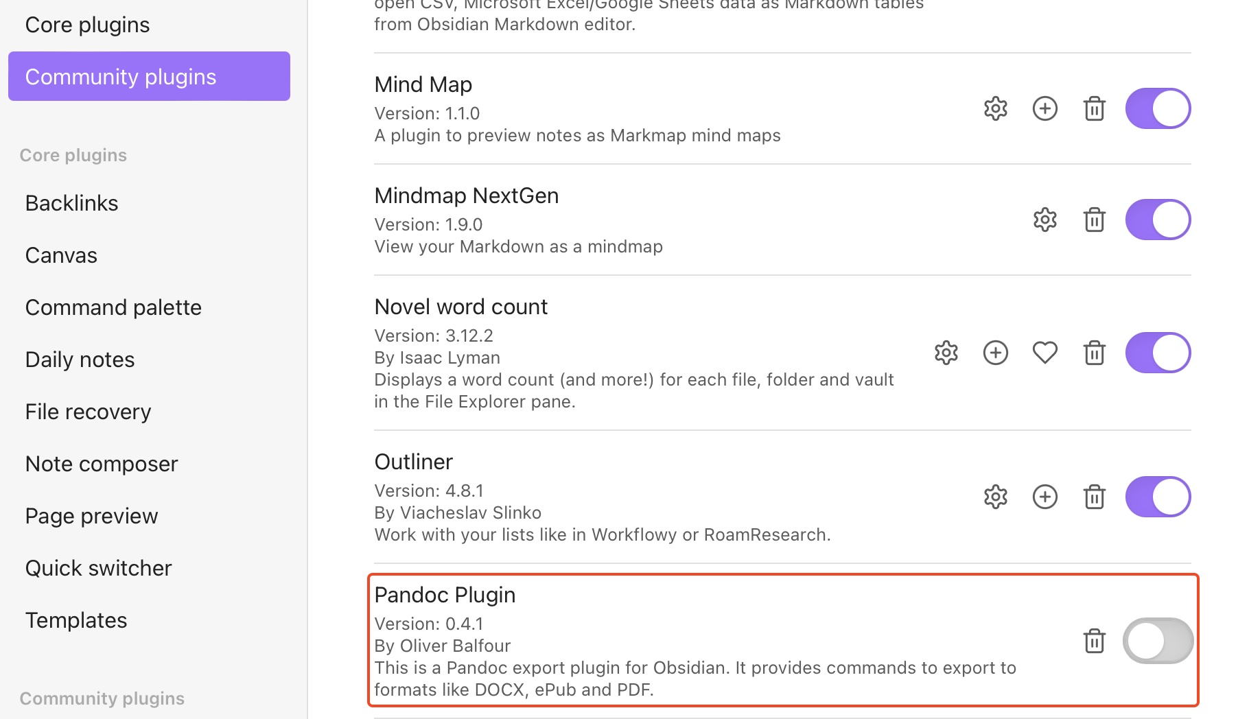 So here is the Pandoc plugin on my iPad. I can click the activate toggle all day and it does nothing.