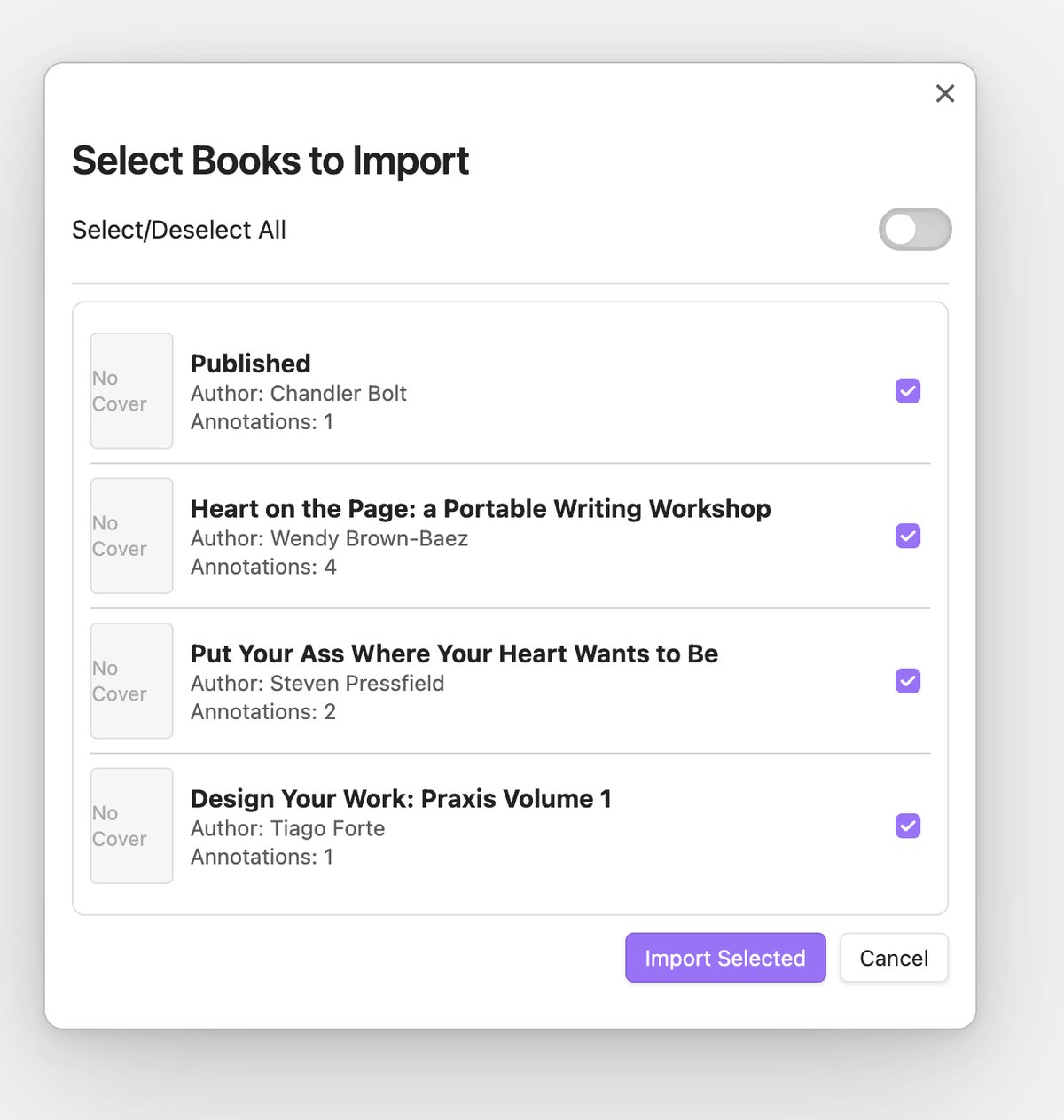The plugin handled the larger database just fine. All the covers loaded correctly, and the color annotations matched what I saw in the Books app.
