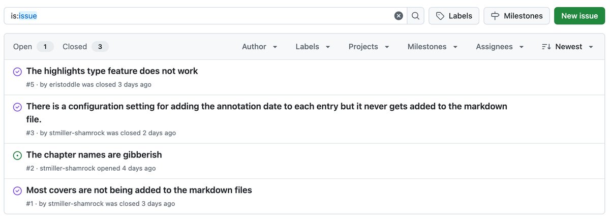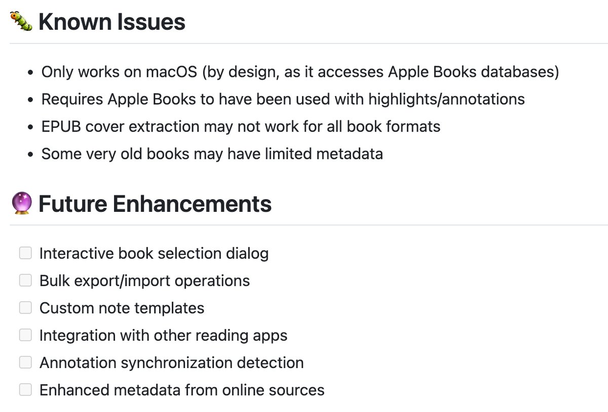 Me: “Fix this feature in the repo: https://github.com/eristoddle/apple-books-annotation-import/issues/5. Do not do anything else.”
